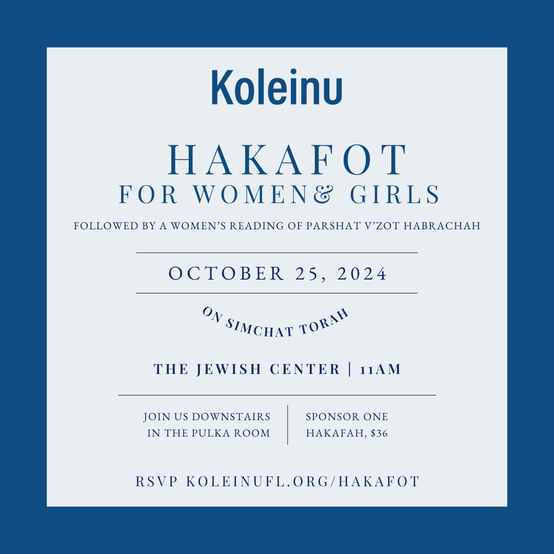 Women, girls, and children of the Fair Lawn community are invited to women’s Hakafot with a Sefer Torah on Simchat Torah!